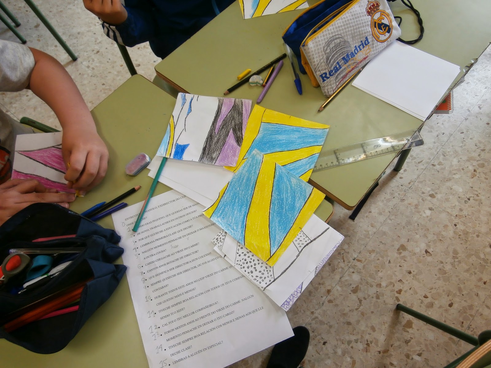 Rematando coas actividades da SEMANA DA ARTE na Mariña, esta semana tocoulle aos cursos de 5º a realización da actividade de pintura impartida por Inés Nécega. Aí queda unha mostra do traballo realizado.